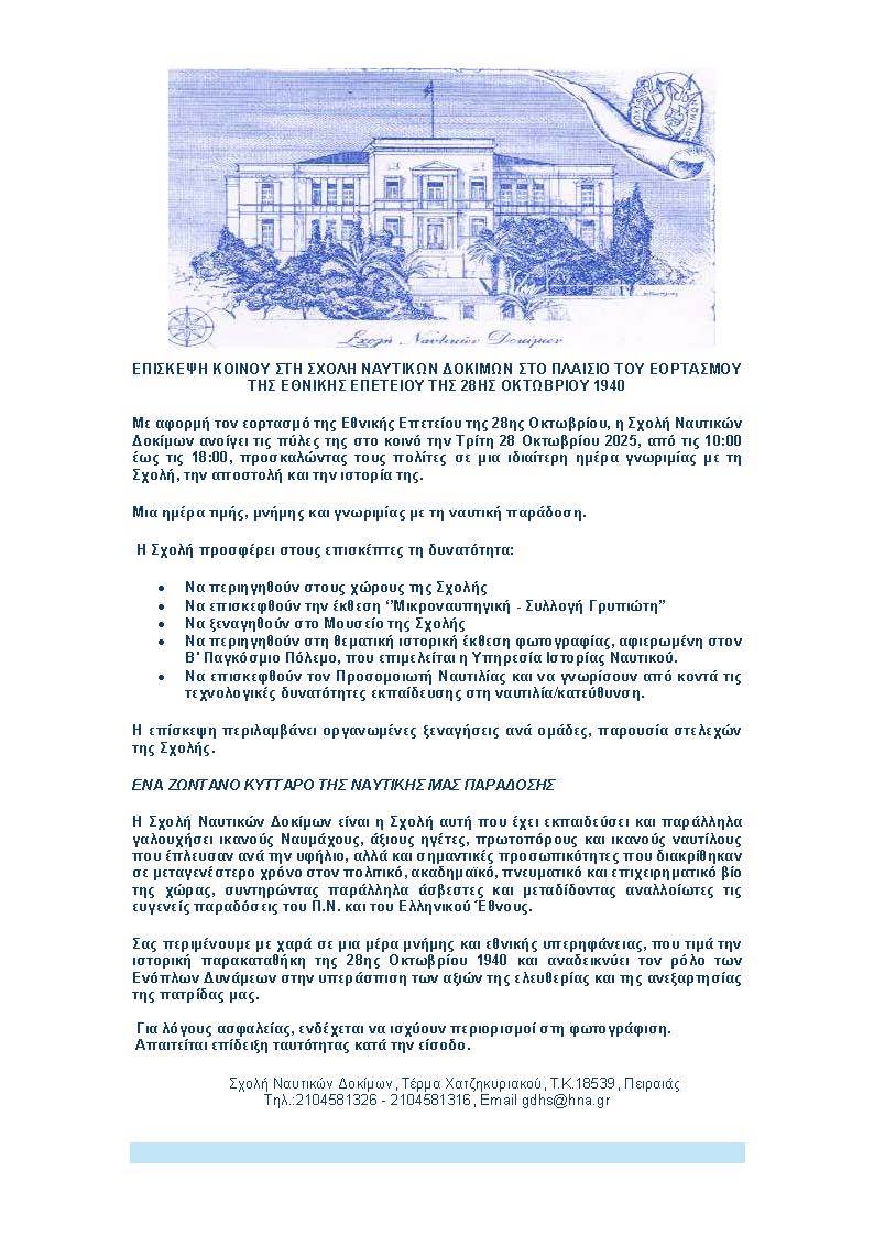 Επίσκεψη Κοινού στη ΣΝΔ στο πλαίσιο Εορτασμού της Εθνικής Επετείου της 28ης Οκτωβρίου 1940