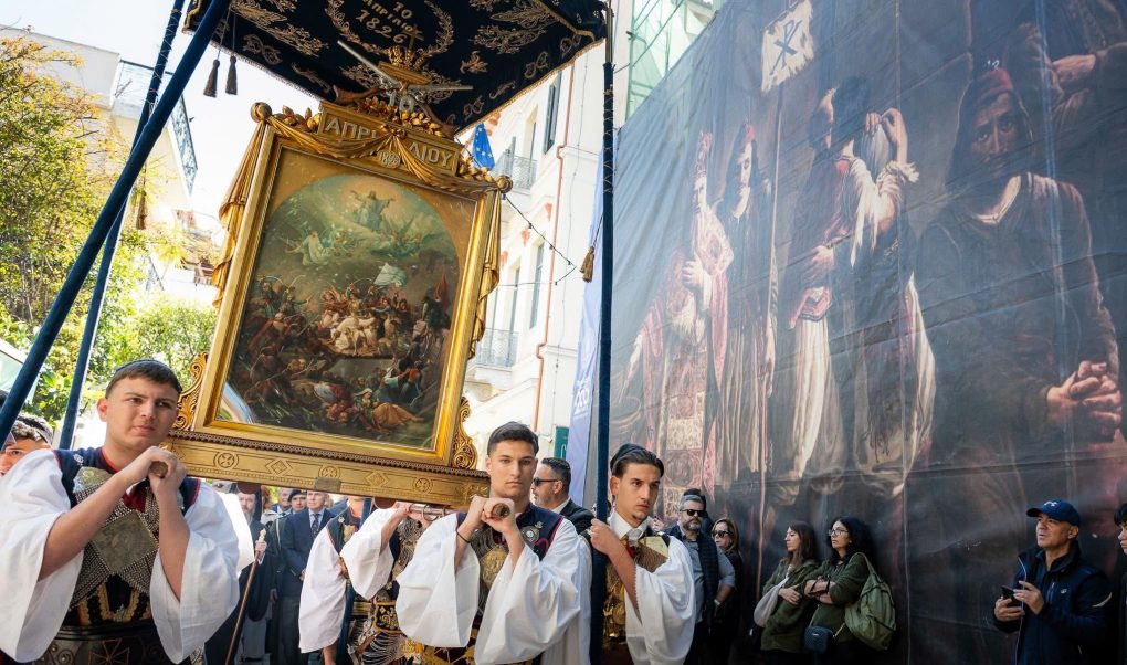 Στη συνέχεια, μετέβη στο μουσείο Ιστορίας και Τέχνης – Πινακοθήκη από όπου έγινε η μεταφορά της Εικόνας της Εξόδου, του Ιερού Λάβαρου, του Τίμιου Σταυρού του Επισκόπου Ρωγών και Κοζύλης, Ιωσήφ και του καριοφιλιού του στρατηγού, Δημητρίου Μακρή στον Ιερό Μητροπολιτικό Ναό του Αγίου Σπυρίδωνος.  Ακολούθως, παρακολούθησε τον Μέγα Πανηγυρικό Πολυαρχιερατικό Εσπερινό, χοροστατούντος του Σεβασμιωτάτου Μητροπολίτου Πατρών Χρυσοστόμου, συμμετείχε στην πομπή προς τον Κήπο των ηρώων, σε ανάμνηση της Εξόδου των Ελευθέρων Πολιορκημένων, ενώ παρέστη στην επιμνημόσυνη δέηση και κατέθεσε στεφάνι.