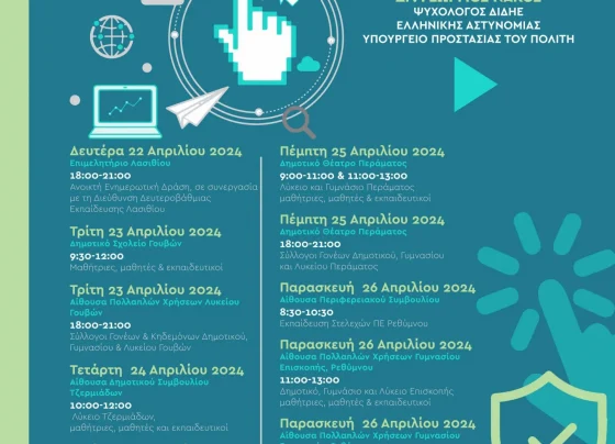 Aπό την Περιφέρεια Κρήτης σε συνεργασία με τη Διεύθυνση Δίωξης της ΕΛ.ΑΣ. Η Περιφέρεια Κρήτης, το Αυτοτελές Γραφείο Ισότητας και…