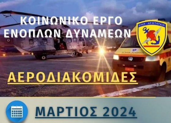 Infographic με την Συνδρομή των Ενόπλων Δυνάμεων σε Αεροδιακομιδές για τον μήνα Μάρτιο 2024.