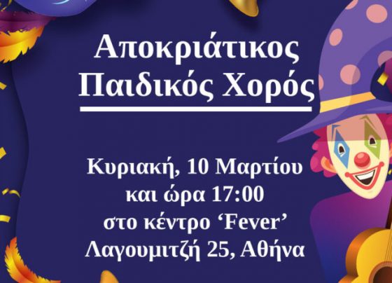 Η Ένωση Αστυνομικών Υπαλλήλων Αθηνών διοργανώνει την Κυριακή 10 Μαρτίου 2024 Αποκριάτικο παιδικό χορό στο κέντρο «FEVER» (Λαγουμιτζή 25 & Λ. Συγγρού, Αθήνα). Ο…