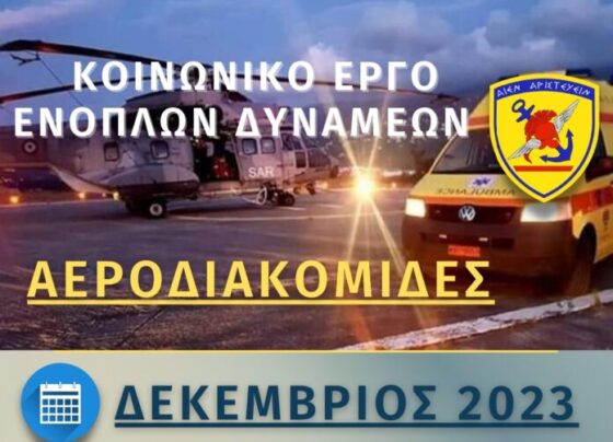 Infographic με την Συνδρομή των Ενόπλων Δυνάμεων σε Αεροδιακομιδές για τον μήνα Δεκέμβριο 2023.