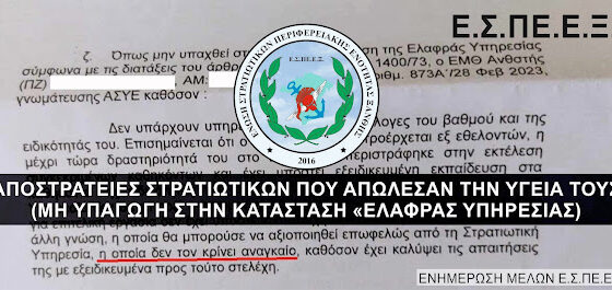 Ε.Σ.ΠΕ.Ε.Ξ. προς κ. ΥΕΘΑ: Αντί της κατάστασης “Ελαφράς Υπηρεσίας”, καθιερώνεται η απόλυση;