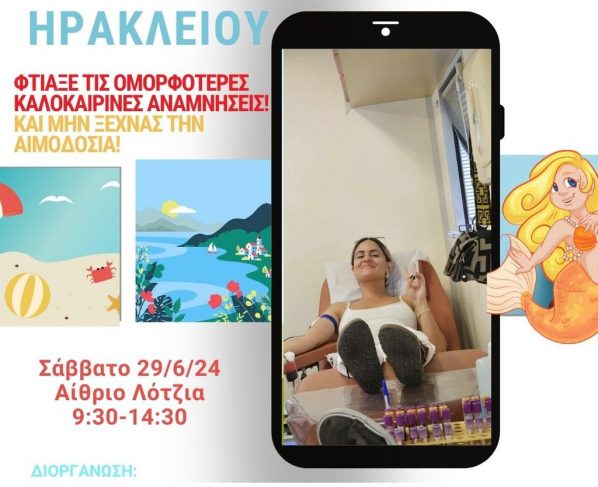 Εθελοντική αιμοδοσία στο Ηράκλειο το Σάββατο 29.06.2024