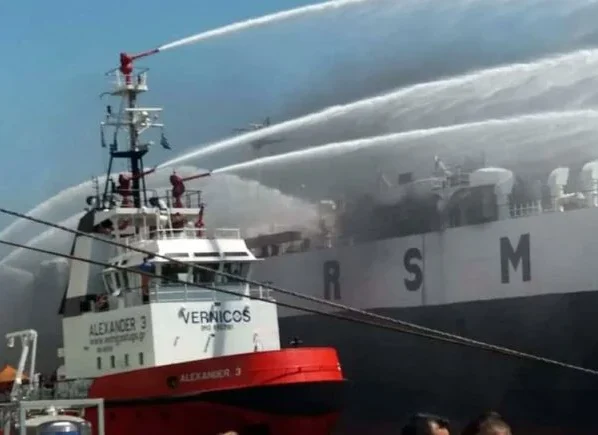 Φωτιά σε φορτηγό πλοίο στο νέο Μώλο Δραπετσώνας