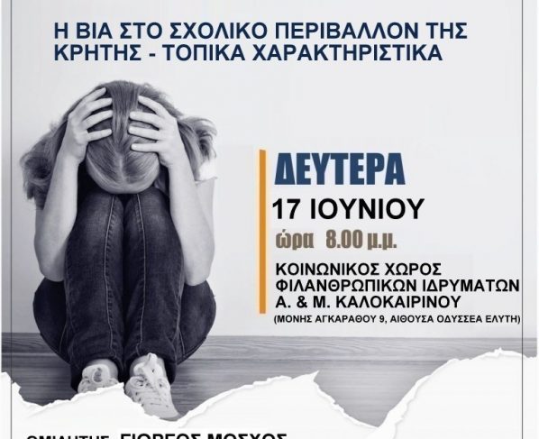 «Βία, ένα φαινόμενο με χίλια πρόσωπα. Η βία στο σχολικό περιβάλλον της Κρήτης – Τοπικά χαρακτηριστικά»