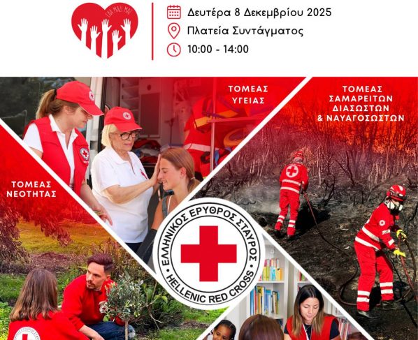 Ο Ελληνικός Ερυθρός Σταυρός τιμά την Παγκόσμια Ημέρα Εθελοντισμού διοργανώνοντας μεγάλη εορταστική εκδήλωση στην Πλατεία Συντάγματος την Δευτέρα 8 Δεκεμβρίου 2025 και ώρες 10:00 – 14:00, με κεντρικό θέμα: «Γίνε…