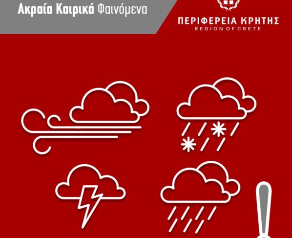 Η Πολιτική Προστασία Περιφέρειας Κρήτηςενημερώνει ότι,σύμφωνα το Α.Α. 11/12-10-2021/1230C ΕΚΤΑΚΤΟ ΔΕΛΤΙΟ ΕΠΙΚΙΝΔΥΝΩΝ ΚΑΙΡΙΚΩΝ ΦΑΙΝΟΜΕΝΩΝ της ΕΜΥ/ΕΜΚ, προβλέπεται η έλευση του καιρικού συστήματος με το όνομα ΜΠΑΛΛΟΣ (BALLOS), με κύρια χαρακτηριστικά…