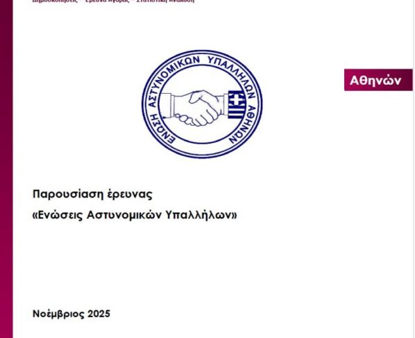 Αθήνα, 19 Νοεμβρίου 2025 Αρ. Πρωτ.: 305/21 Αποτελέσματα έρευνας- δημοσκόπησης Ε.ΑΣ.Υ.Α Η Ένωση Αστυνομικών Υπαλλήλων Αθηνών παρουσιάζει έρευνα- δημοσκόπηση στην οποία έλαβαν μέρος 1.201 αστυνομικοί που υπηρετούν σε Αστυνομικές Υπηρεσίες…