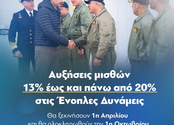 Ο Υπουργός Εθνικής Άμυνας, Νίκος Δένδιας, ανακοίνωσε χθες, Παρασκευή 28 Μαρτίου 2025, την αύξηση των αποδοχών των στελεχών των Ενόπλων Δυνάμεων.…