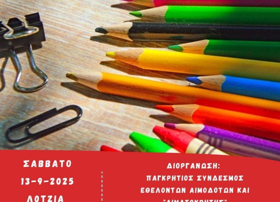 Το Σάββατο 13 Σεπτεμβρίου 2025 θα πραγματοποιηθεί εθελοντική αιμοδοσία στο κέντρο της πόλης του Ηρακλείου και συγκεκριμένα στο αίθριο της…