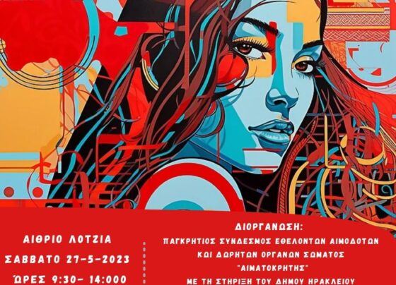 Εθελοντική αιμοδοσία θα πραγματοποιηθεί το Σάββατο 27/05/2023 στο κέντρο της πόλης του Ηρακλείου και συγκεκριμένα στο αίθριο της Λότζια από…