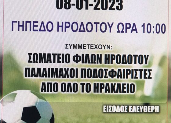 Το «Σωματείο Φίλων Ηροδότου» εις μνήμη Αντωνίου Καργιωτάκη, οργανώνει φιλανθρωπικό τουρνουά ποδοσφαίρου με την στήριξη της Περιφέρειας Κρήτης. Στόχος του…