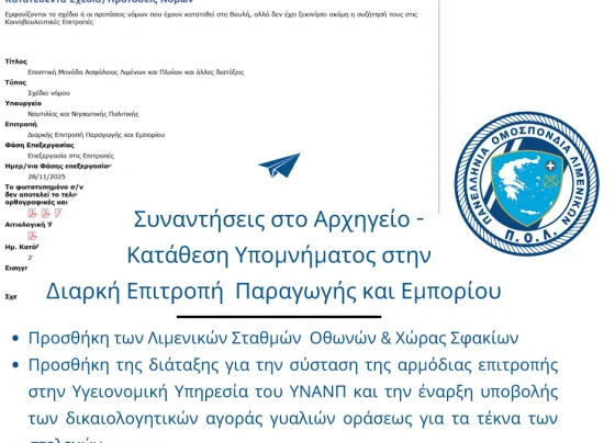 Κατάθεση υπομνήματος στην Διαρκή Επιτροπή Παραγωγής και Εμπορίου Η Ομοσπονδία μας την 26η και 27η Νοεμβρίου πραγματοποίησε συναντήσεις στο ΥΝΑΝΠ  προκειμένου…