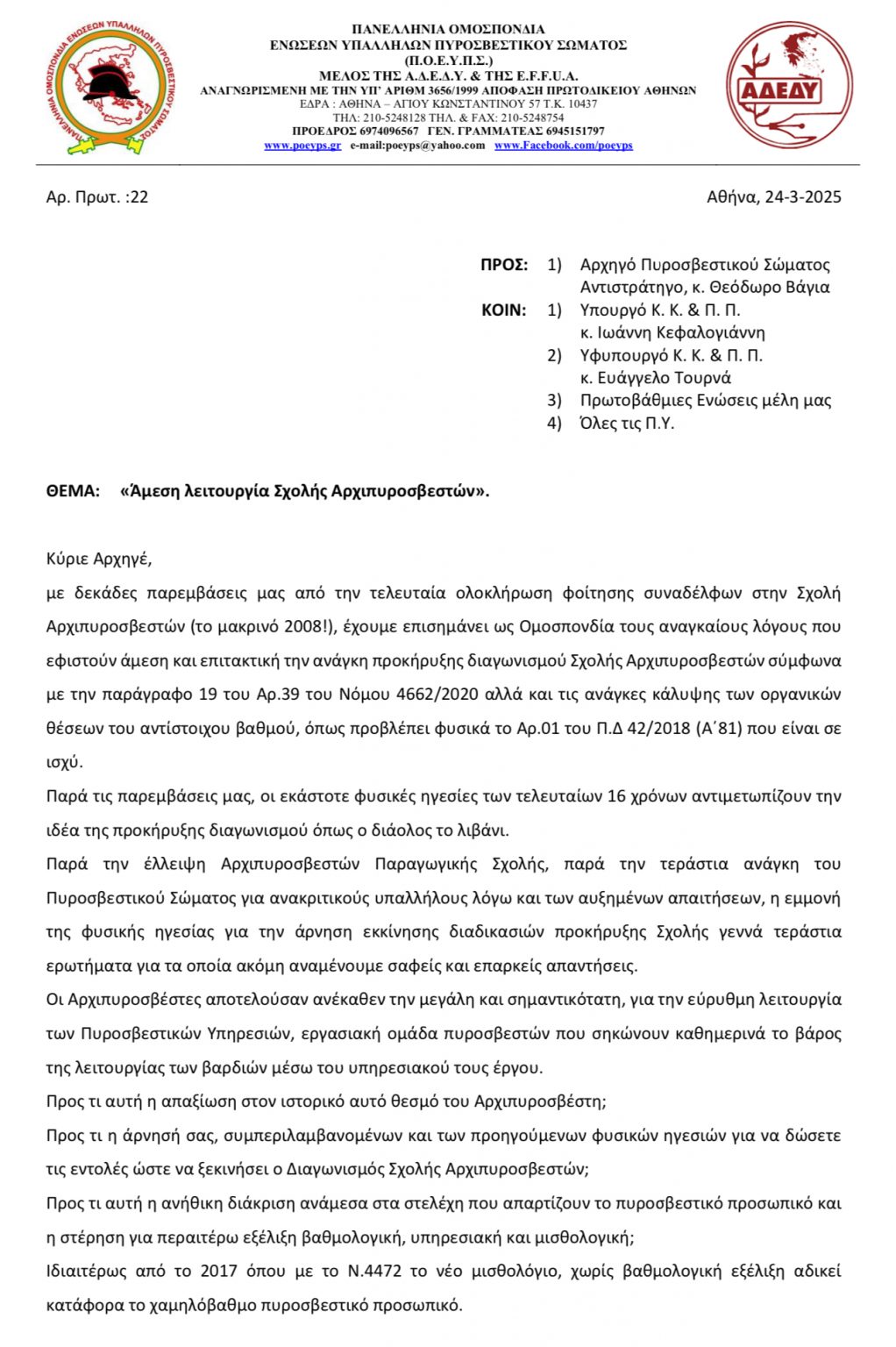 Άμεση λειτουργία Σχολής Αρχιπυροσβεστών