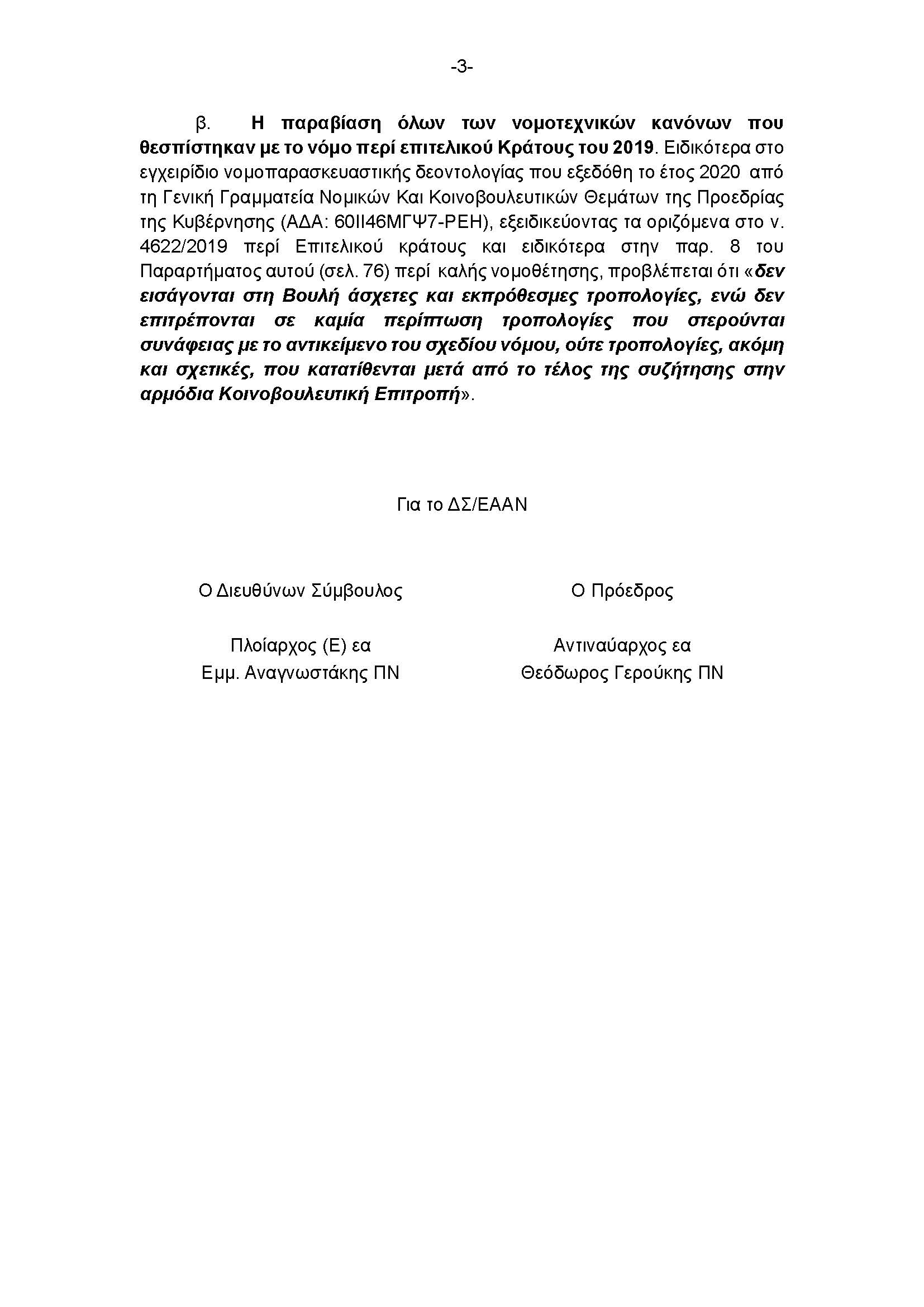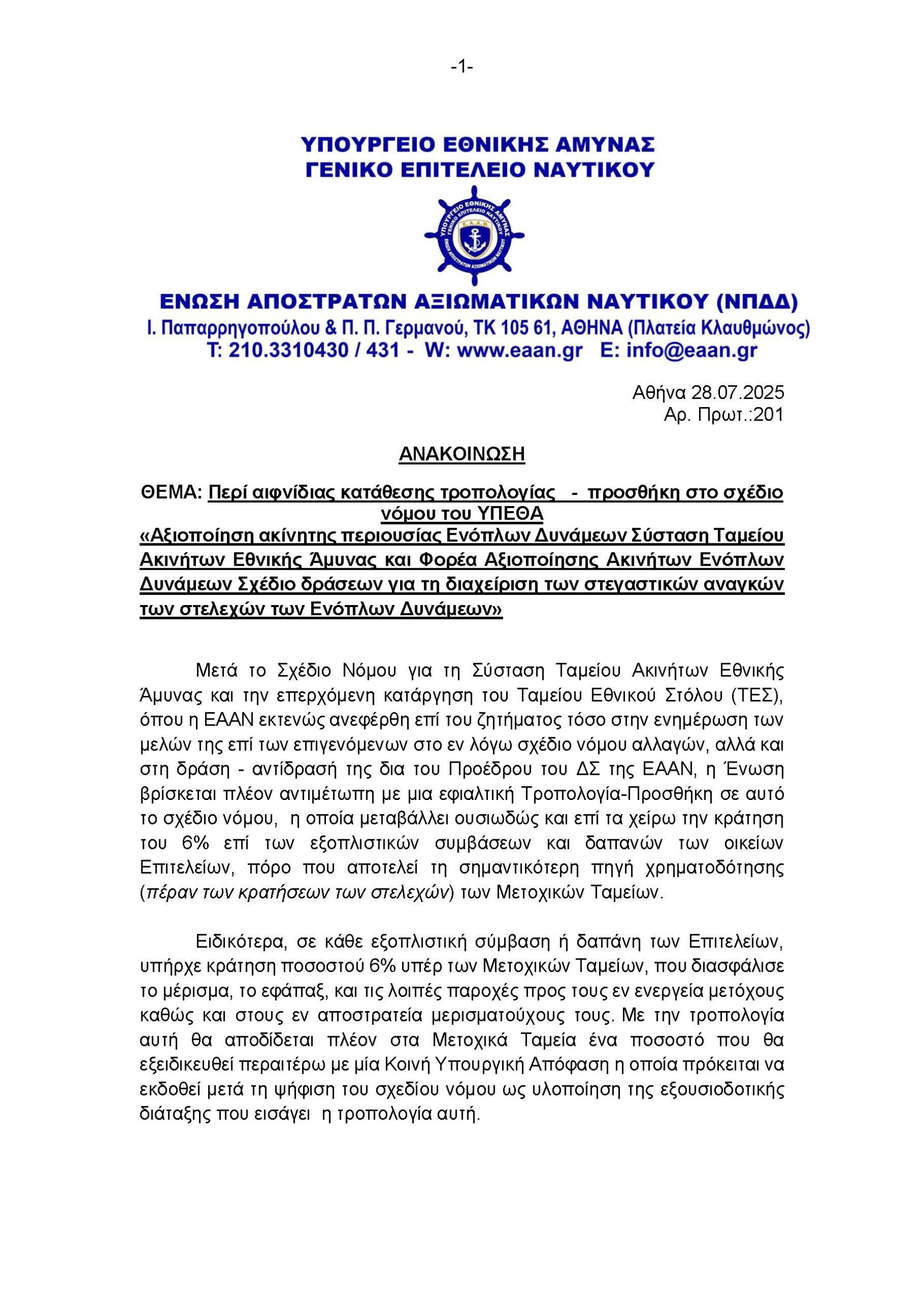 Ανακοίνωση ΕΑΑΝ / Περί Αιφνίδιας Κατάθεσης Τροπολογίας – Προσθήκη στο Σ.Ν. του ΥΠΕΘΑ για τα Μετοχικά Ταμεία