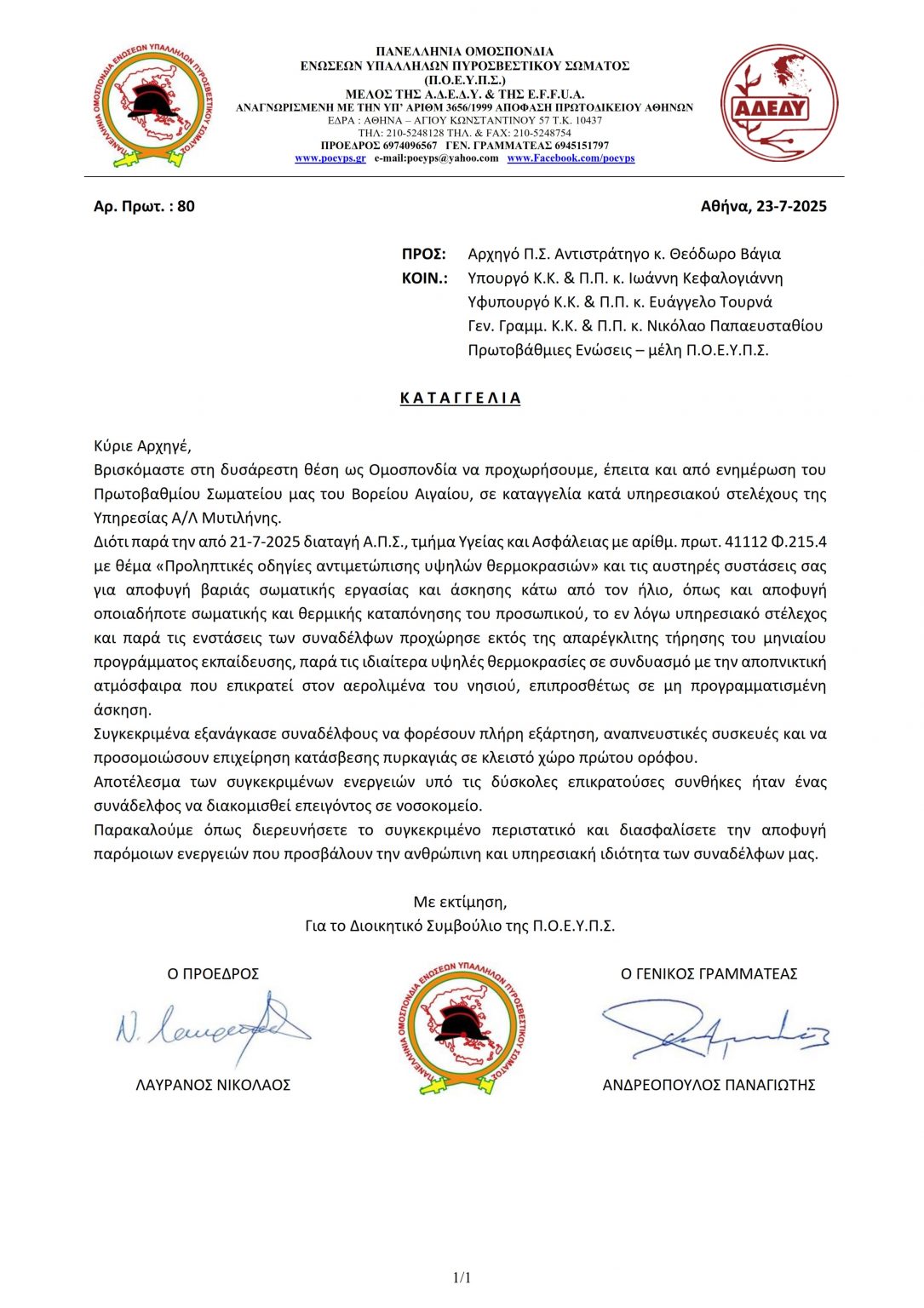 Καταγγελία κατά υπηρεσιακού στελέχους της Υπηρεσίας Α/Λ Μυτιλήνης
