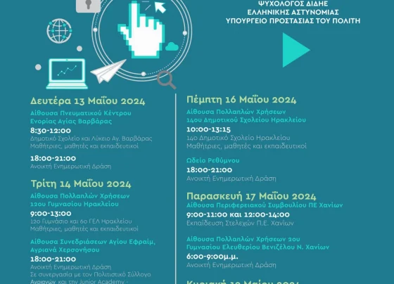 Από την Περιφέρεια Κρήτης-Αυτοτελές Γραφείο Ισότητας, σε συνεργασία με τη Διεύθυνση Δίωξης της ΕΛ.ΑΣ. Η Περιφέρεια Κρήτης, Αυτοτελές Γραφείο Ισότητας,…