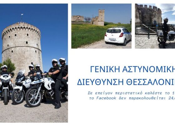 Η Γενική Αστυνομική Διεύθυνση Θεσσαλονίκης, ενόψει της εορταστικής περιόδου των Χριστουγέννων, Πρωτοχρονιάς και Θεοφανείων αποσκοπώντας στην προστασία και την ασφάλεια…