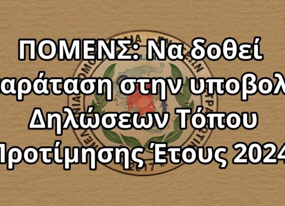 ΠΟΜΕΝΣ: Να δοθεί παράταση στην υποβολή Δηλώσεων Τόπου Προτίμησης Έτους 2024