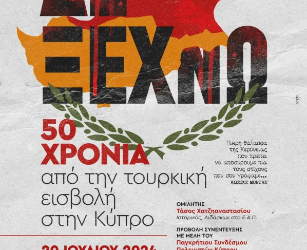 Εκδηλώσεις ΜΝΗΜΗΣ & ΤΙΜΗΣ «ΚΥΠΡΟΣ 1974 – 50Η ΕΠΕΤΕΙΟΣ» για τους πεσόντες και αγνοούμενους κατά την Τουρκική Εισβολή στην Κύπρο το 1974 θα πραγματοποιηθούν το Σάββατο 20 Ιουλίου 2024 και…