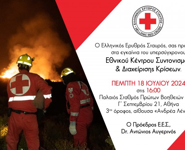 Ο Ελληνικός Ερυθρός Σταυρός (Ε.Ε.Σ.), την Πέμπτη 18 Ιουλίου και ώρα 4 μ.μ., εγκαινιάζει το υπερσύγχρονο Εθνικό Κέντρο Συντονισμού και Διαχείρισης Κρίσεων του Ε.Ε.Σ.,  το οποίο στεγάζεται στο ιστορικό κτήριο…