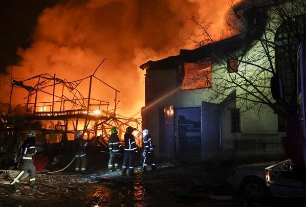 Ρωσικές αεροπορικές επιθέσεις προκάλεσαν πυρκαγιά σε βιομηχανική εγκατάσταση στο Κίεβο και αρκετούς τραυματισμούς
