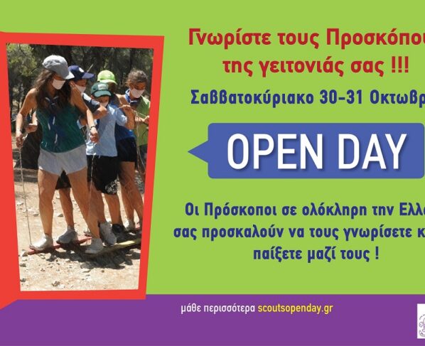 Σαββατοκύριακο 30-31 Οκτωβρίου 2021 σε 350 γειτονιές σε ολόκληρη την Ελλάδα Οι Έλληνες Πρόσκοποι διοργανώνουν για τρίτη συνεχή χρονιά, πανελλήνιο Open Day, με τίτλο «Γνωρίστε τους Προσκόπους της Γειτονιάς σας» το Σαββατοκύριακο…