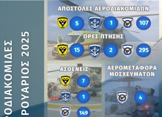 Infographic με τη Συνδρομή των Ενόπλων Δυνάμεων σε Αεροδιακομιδές για τον μήνα Φεβρουάριο 2025.