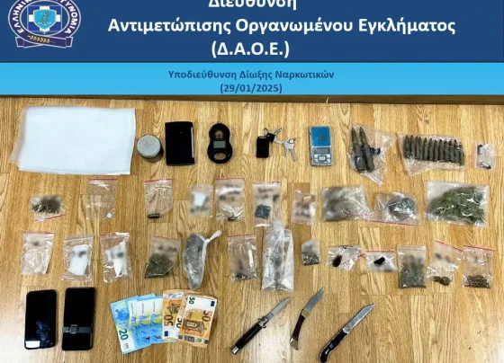 Σύλληψη άνδρα για κατοχή και διακίνηση ναρκωτικών ουσιών και παράβαση του νόμου για τα όπλα