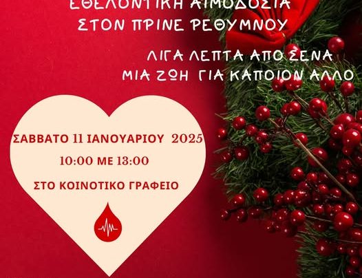Εθελοντική Αιμοδοσία στον Πρινέ Ρεθύμνου – «Λίγα λεπτά από σένα, μία ζωή για κάποιον άλλον!»